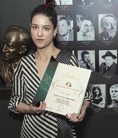 Godišnju nagradu FONDACIJE RUŽICA SOKIĆ čini Plaketa i novčani iznos, koje su mladoj glumici dodelili predsednica Fondacije Vesna Stanković i osnivač i upravitelj Fondacije gospodin Miroslav Lukić.